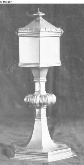 Suchmeldung Ciborium Hersteller/Künstler:in Unbekannt (Deutsch) Objektart Kunsthandwerk / -gewerbe Material / TechnikMetall (Kupfer) / vergoldetLost Art-ID450207