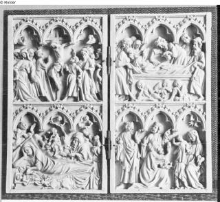 restituiert Suchmeldung Elfenbein-Diptychon Hersteller/Künstler:in Unbekannt (Französisch / Paris) Hersteller/Künstler:in Paris oder Nordfrankreich Objektart Schnitzerei Material / TechnikElfenbein / geschnitztLost Art-ID449635