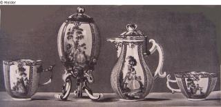Suchmeldung weißes Reisefrühstücksservice mit blauen geschuppten goldrandigen Bordflächen, bunten Blumen und Watteauszenen Manufaktur Porzellanmanufaktur Meissen Objektart Kunsthandwerk / -gewerbe Lost Art-ID319613