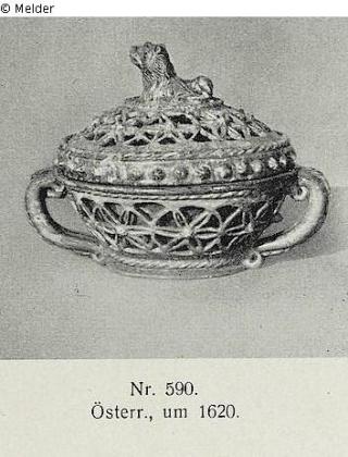 Metall (Kupfer) / vergoldet ; getrieben ; graviert