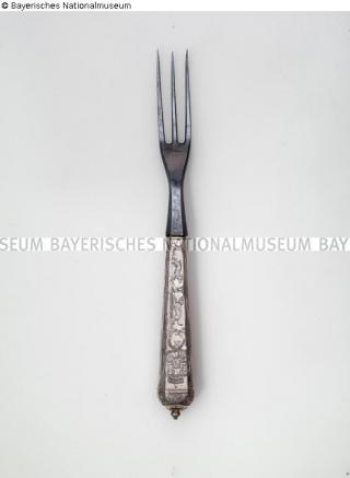 Fundmeldung Gabel, Griff mit Jagdszenen und dänischem Königswappen Objektart Kunsthandwerk / -gewerbe Material / TechnikMetall (Silber) ; Metall (Eisen) / graviertLost Art-ID570398