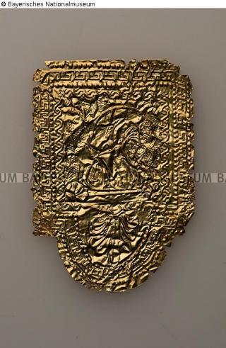 Fundmeldung Zungenförmige Goldapplike Objektart Kunsthandwerk / -gewerbe Material / TechnikMetall (Gold) / geprägtLost Art-ID570451