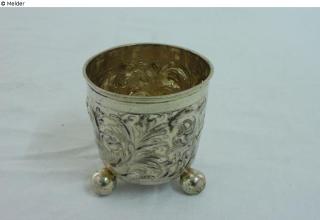 Fundmeldung Becher mit drei Kugelfüßen Hersteller/Künstler:in Richels, Jürgen Objektart Gefäß Material / TechnikMetall (Silber) ; Metall (Gold) / graviert ; vergoldet...Lost Art-ID626422