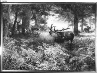 Suchmeldung Herbstmorgen im Walde mit röhrendem Hirsch Hersteller/Künstler:in Kröner, Christian Objektart Malerei Material / TechnikWasserfarbe / aquarelliertLost Art-ID138006