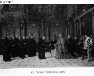 Suchmeldung Besuch des Kardinals im Kloster Hersteller/Künstler:in Lerche, Vincent Stoltenberg Objektart Malerei Material / TechnikÖl ; Leinwand / gemaltLost Art-ID427501