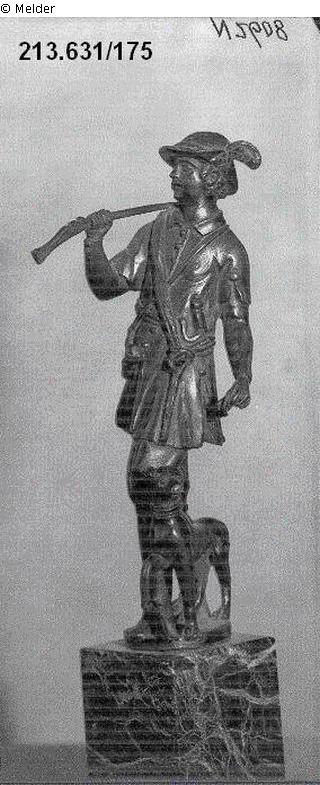 Suchmeldung Jäger mit geschultertem Gewehr, von einem Hund begleitet Hersteller/Künstler:in Unbekannt (Italienisch) Objektart Plastik / Skulptur Material / TechnikMetall (Bronze) ; MarmorLost Art-ID301830