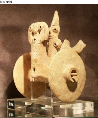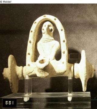 Fundmeldung Weibliche Figur in einem Wagen Hersteller/Künstler:in Unbekannt (Hethitisch / Hittitian) Objektart Plastik / Skulptur Material / TechnikKeramikLost Art-ID287597