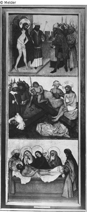 1883/84 aus der Pfarrkirche Ebern durch Ankauf erworben; als Dauerleihgabe der Bayerischen Staatsgemäldesammlungen im Germanischen Nationalmuseum Nürnberg im Zweiten Weltkrieg auf der Cadolzburg in Mittelfranken ausgelagert, Burg brannte am Ende des Krieges bis auf die Außenmauern nieder, gelagerte Kunstwerke mit sehr hoher Wahrscheinlichkeit zerstört