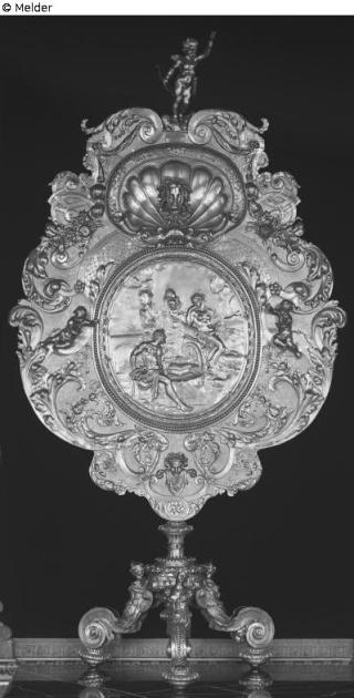 Metall (Silberblech) / getrieben ; punziert ; vergoldet