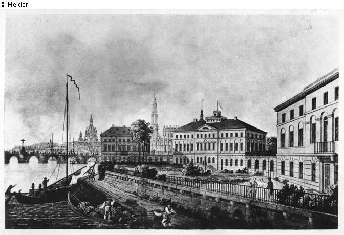 Abbildung: Stich nach dem Stich von J. C. A. Richter, um 1840; Aufstellung der ausgelagerten Bestände des Stadtmuseum Dresden im 2. Weltkrieg, Blatt 26.