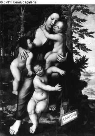 Tafelmalerei: Bild: (Nächsten)liebe, Caritas (Ripa: Carità) als eine der drei theologischen Tugenden; Nächstenliebe; caritas