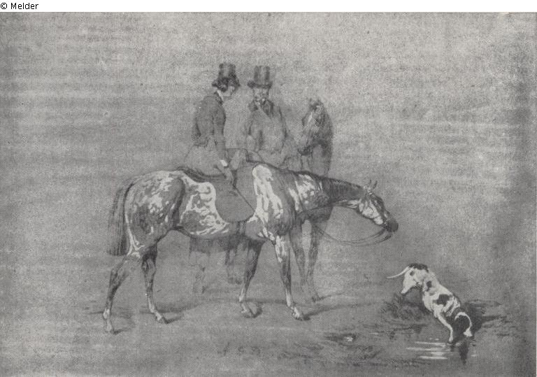 Cavalier amazone et chien / Amazonasreiterin und Hund