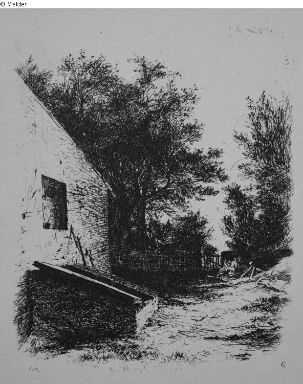 bezeichnet unten: A. Menzel, 1843, Nr. 6, III., Radierversuche, Mappe, enthaltend Titelblatt, sechs Radierungen und drei Dubletten, 1. Auflage