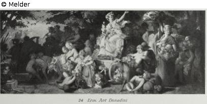 Putten fahren die von schönen, früchtetragenden Frauen umgebene Göttin der Schönheit auf einem Prunkwagen. Goldrahmen