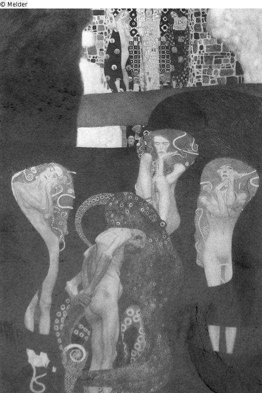 nach Weidinger, Nr. 166: Jurisprudenz, Datierung: 1903, Ort: Festsaal der Wiener Universität, Format: 430 x 300 cm, Technik: Öl auf Leinwand, bez. r. u.: "GUSTAV KLIMT", Provenienz: K. K. Ministerium für Unterricht, Wien (in Auftrag gegeben 4. Sept. 1894; von Klimt zurückgekauft 25. Mai 1905, Ditha Moser, Wien (seit ca. 1910); August und Serena Lederer, Wien (1919 erw.); Erich Lederer; Genf; Österreichische Galerie, Wien (Inv.-Nr. 3982) (1944 erw.);