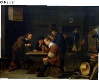 Die Spieler (Würfelspielende Soldaten in Interieur)