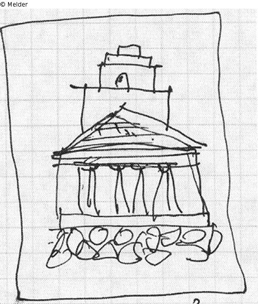 Entwurf zum Lutherdenkmal: Quadratischer Tempel bekrönt von einer Gruppe des Triumphierenden Glaubens; Blatt 1:
