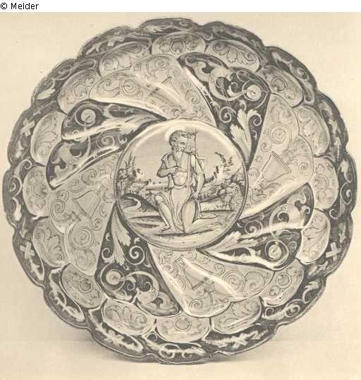 Flache Schale (Tazza) mit knieendem St. Hieronymus und Löwen