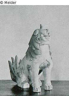 zwei altchinesische Holzplastiken, Reste alter Bemalung