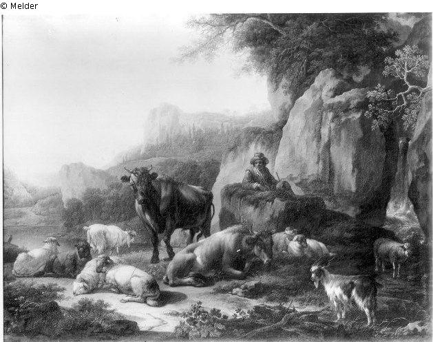 Gebirgsgegend mit Hirt und Herde