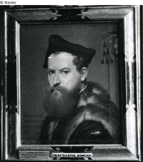Beschriftet links unten:"BARTHOL./BONGUS.I.V.D./PROTHON/APLICUS./COMES/[...]" (letzte Zeile im Foto vom Rahmen angeschnitten)