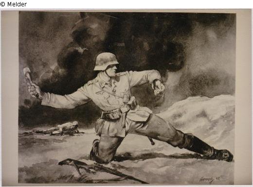 Suchmeldung | Einzelobjekt Handgranatenangriff Lost Art-ID519091 Vorherige Weiter Hersteller/Künstler:in Berretz, Gerhard TitelHandgranatenangriff Datierung1942ObjektartAquarellObjektgruppeGrafikMaterial / TechnikWasserfarbe ; Papier (Aquarellpapier) weiß / aquarelliert Höhe 37,00 cm Breite 29,00 cm Beschreibung signiert: "Berretz 42" Weiterlesen Weniger anzeigen Provenienz Familie Berretz, Köln; Verlust nach 1942 (zur Ausstellung in einem Berliner Museum, von dort nicht zurückerlangt); möglicherweise verbrannt; seit Kriegsende verschollen Weiterlesen Weniger anzeigen Veröffentlicht seit02.06.2014 Kontakt Kontaktanfragen richten Sie bitte an das Deutsche Zentrum Kulturgutverluste.