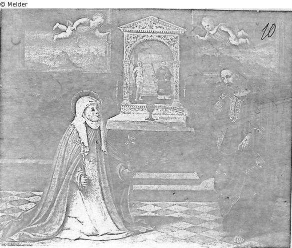 Suchmeldung | Einzelobjekt Heiligenszene Lost Art-ID417268 Vorherige Weiter Hersteller/Künstler:in Unbekannt (Italienisch; Oberitalien) TitelHeiligenszene Datierung1401/1500ObjektartGemäldeObjektgruppeMalereiMaterial / TechnikÖl / gemaltInventarnummerLager-Nr. 5075 und 43bProvenienz Ankauf 1940 von Prof. Dr. Eggen/r (?), Graz für 1200 RM; Einlagerung der Kunstgegenstände 1943 durch Firma Karl Boden Nachf. OHG Spedition, Möbeltransporte; Verlust: "Lager Mager" in Groß-Buckow, 1945. Weiterlesen Weniger anzeigen Literatur / Quelle Dokumente in Besitz von Konrad Heydenreich Weiterlesen Weniger anzeigen Veröffentlicht seit2010 Kontakt Kontaktanfragen richten Sie bitte an das Deutsche Zentrum Kulturgutverluste.