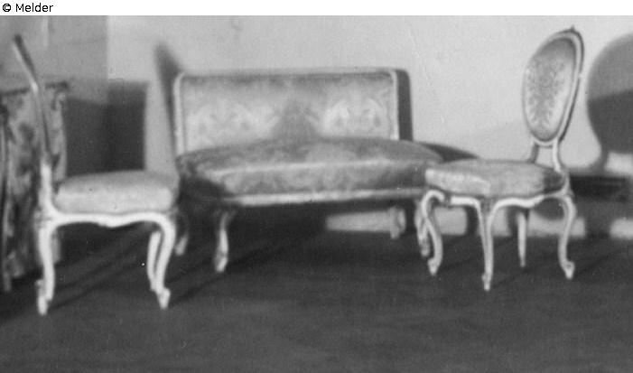 Suchmeldung | Einzelobjekt Kleines Sofa und fünf Stühle Lost Art-ID566783 Vorherige Weiter Hersteller/Künstler:in Unbekannt TitelKleines Sofa und fünf StühleObjektartMöbelObjektgruppeKunsthandwerk / -gewerbeMaterial / TechnikHolz ; Textil (Seide) [?] ; LackBeschreibung Kleines Sofa und fünf Stühle, lackiert.Quelle: www.waehring.or.at/unser-haus/geschichte-des-hauses/ (Abbildung 1). Weiterlesen Weniger anzeigen Provenienz Sammlung Emmerich Kálmán, Wien - Paris, - 1942 (um) Beschlagnahme durch Einsatzstab Reichsleiter Rosenberg (ERR), Paris Weiterlesen Weniger anzeigen Veröffentlicht seit15.02.2017 Ansprechpartner:in Mondex CorporationE-Mailinfo@mondexcorp.com