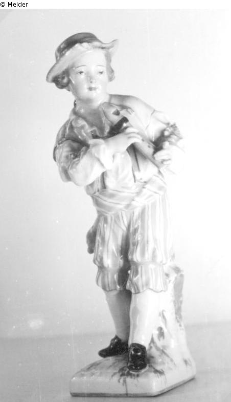 Knabe, stehend mit Flöte auf rechteckigem Sockel, bunt bemalt