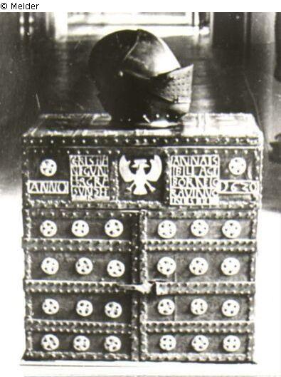Kriegscassette mit Aufschrift und Jahreszahl 1620 oder 1630