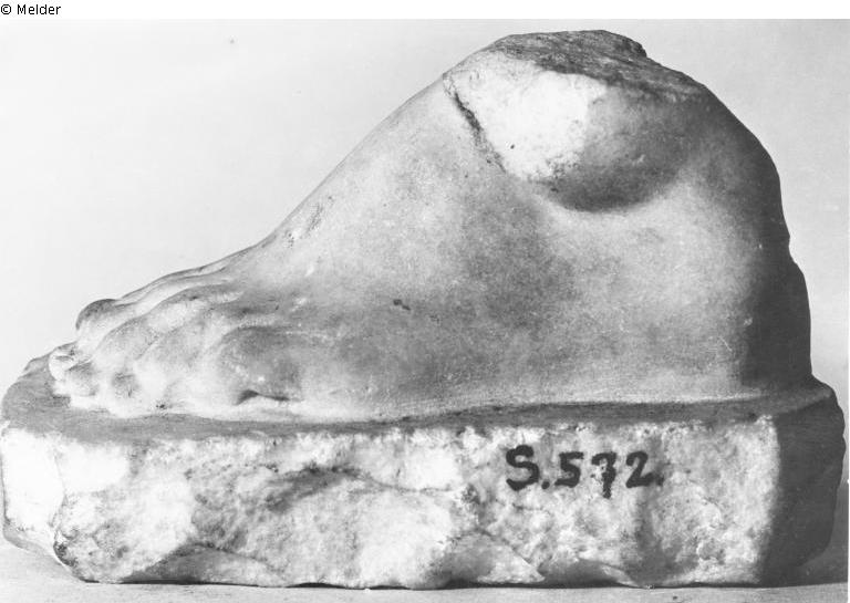 Fragment einer Skulptur (linker Fuß) mit Plinthenrest