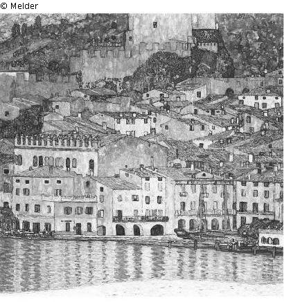 nach Weidinger, Nr. 216: Malcesine am Gardasee, Datierung: 1913, Foramt: 110 x 110 cm, Technik: Öl auf Leinwand, Bezeichnung: r. u.: "GU5TAV / KLIMT", Provenienz: Viktor Zuckerkandl, Wien; Viktor und Paula Zuckerkandl Nachlass (1928); Fritz Zuckerkandl, Wien; August und Serena Lederer, Wien (vor 1938); Erich Lederer, Genf;
