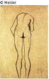 Rückenansicht eines vorgebeugten Jünglingsaktes