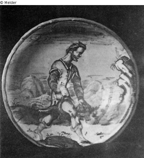 Gehört zu einem Konvolut von 13 Tellern und Schüsseln (1830: Nr. 142-157, 1858: Nr. 196-208), die laut Inventar 1858 "von Herzog Ernst II. S.G.A. her[stammen], welcher (lt. Extr. u. Acten II. fol. 3 No. V) 46 Stück von verschiedener Art und Größe, zum Theil schadhaft zur Kunstkammer gab."; weitere Anm. 1858: "Laut Brief des Hr. v. Murr in Nürnberg v. 11. Jan. 1791 wurden die 46 Majolicas um 10 Ducaten gekauft."