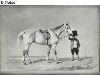 Schimmel mit Stallbursche. Rechts unten bezeichnet: F. Krüger dl. 43.