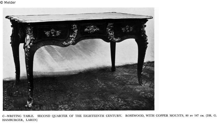 Suchmeldung | Einzelobjekt Schreibtisch Lost Art-ID601235 Vorherige Weiter Hersteller/Künstler:in Migeon, Pierre (zugeschrieben) Geburt 1696.08.13, Paris Tod 1758.09.05, Paris TitelSchreibtischObjektartMöbelObjektgruppeKunsthandwerk / -gewerbeMaterial / TechnikHolz ; Metall (Messing) ; Leder Höhe 80,00 cm Breite 147,00 cm Beschreibung Runde Ecken und schwere Messingbeschläge, Régence, lederbezogen und drei Schubladen Weiterlesen Weniger anzeigen Provenienz Sammlung Gustaaf Hamburger; Heerengracht 579, Amsterdam während der Besatzungszeit; beschlagnahmt von Dienststelle Mühlmann; Verbleib unbekannt Weiterlesen Weniger anzeigen Veröffentlicht seit11.08.2022 Ansprechpartner:in Mondex CorporationE-Mailinfo@mondexcorp.com