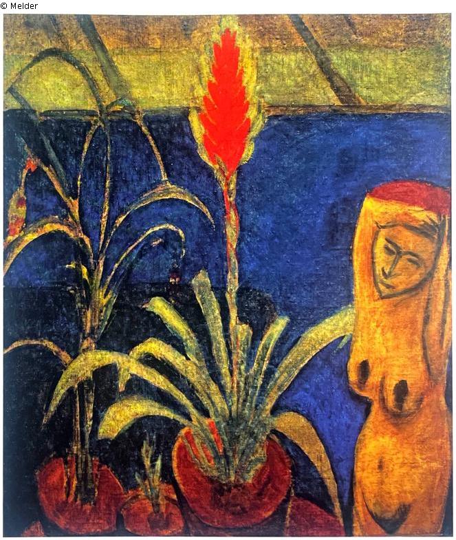 Pflanzen in drei Kübeln neben einer nackten Frau; Das Gemälde ist auf der Rückseite mit einem Akt bemalt, der erst 1954 freigelegt wurde.