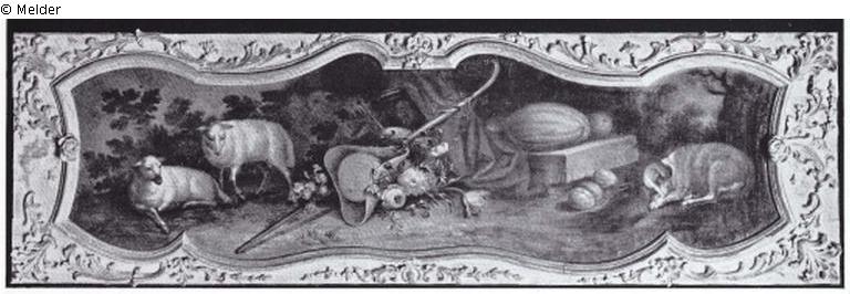 Supraporte mit Bienenkorb, Vogelbauer