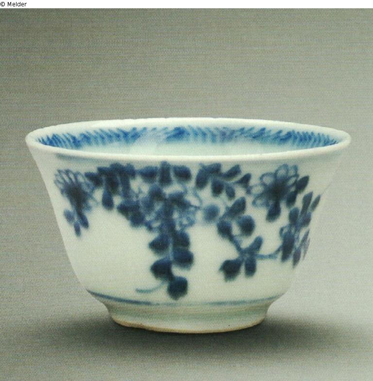 Keramik (Porzellan) ; Unterglasurfarbe kobaltblau / Emaillemalerei