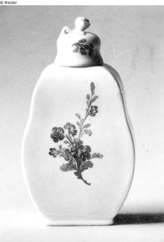 Teedose in geschweifter Form mit Blumendekor