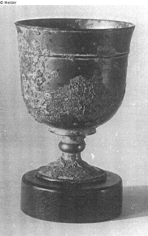 Sakralgefäß. Tou. Roter Ton mit grüner, schön einheitlich silbern versinterter Glasur