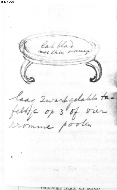 Quelle: Algemeen Politieblad van het Koninkrijk der Nederlanden, Jg. 95, Nr. 34, 30. November 1946 publizierten Liste 719 „Te ‘s-Gravenhage ontvreemd in 1943/1944, hollandsche teekeningen, t. w.“; Intern Aangifte Formulier vom 9.5.1946, BArch Koblenz B 323/2 fol. 172 mit eigenhändiger Skizze von F. Lugt;