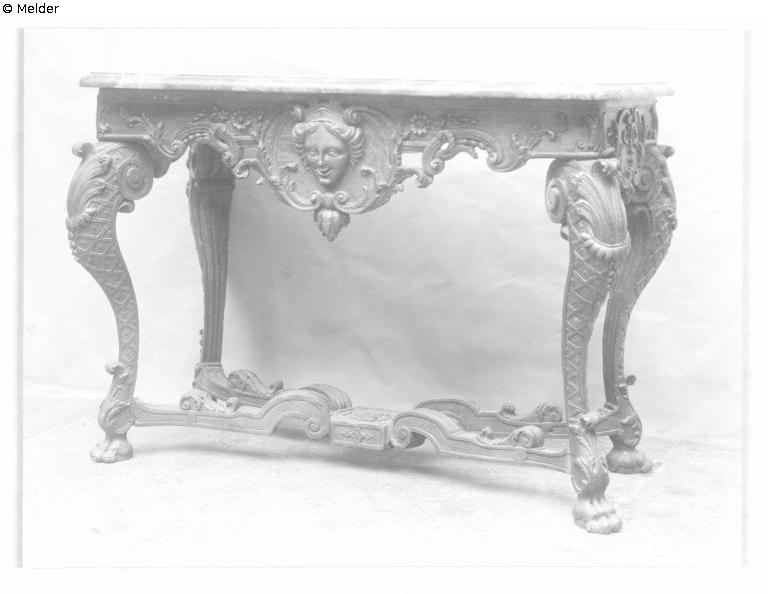 mit Marmorplatte, Louis XVI. Beschriftung der Rückseite des Fotos: Tisch, Engelskopf in der Mitte „Seite 4 Lot 25“. Quelle: Liste, der im Ausland beschlagnahmten Kunstgegenstände. In: D - LAB, B Rep. 025-04, Nr. 671/ 57.