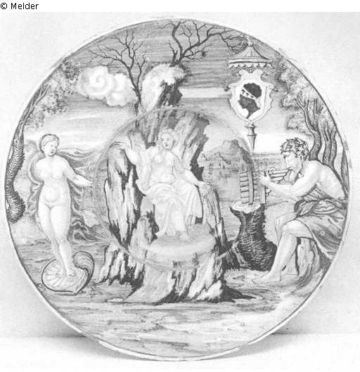 Wappenteller (Tondino) mit Polyphemus, König der Zyklopen, und Galateia
