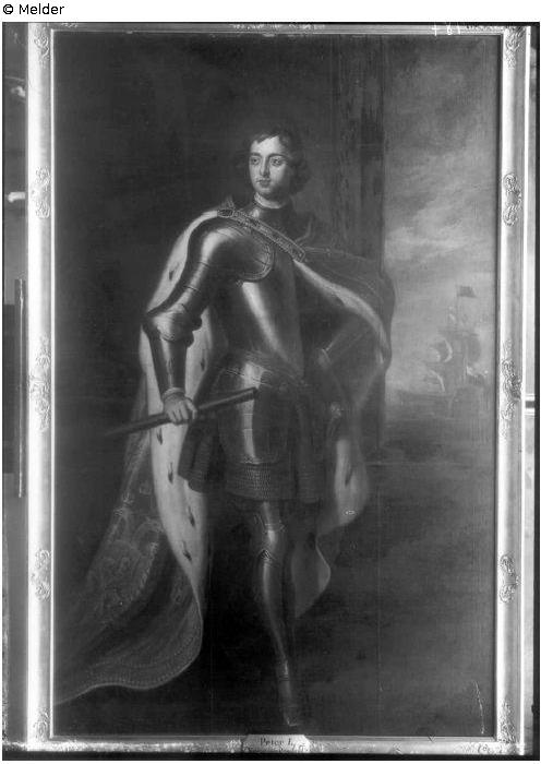 Gemälde mit vergoldetem Rahmen. Der Dargestellte wird beschrieben: „in Rüstung mit Hermelinmanterl mit Perlenbesatz und mit dem Russ. Adler; in der rechten Hand den Commandostab, links auf einem Tische die Krone; im Hintergrunde ein mit Segelschiffen belebter Hafen.“
