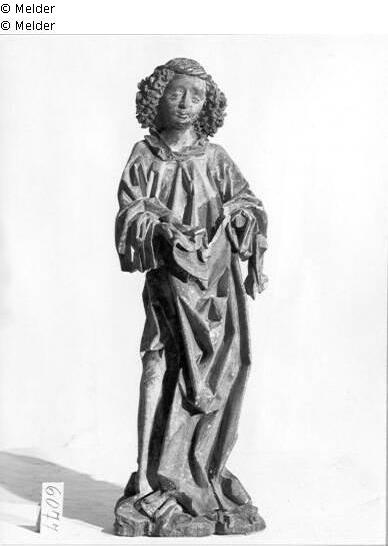 Found-Object Report | Object report Angel of a baptism by Christ Lost Art-ID220392 Previous Next Artist / Creator Pacher, Michael (Schule des) Birth (um) 1435, Neustift (Brixen)? Death 1498 Place of activityBruneck TitleAngel of a baptism by Christ Dating1490 (um)Object typeSculptureGroup of reported objectsSculptureMaterial / TechniqueWood Height 102.00 cm Inventory numbermü6077Description Brixen, around 1490; angel frontal, head with curly hair, slightly lowered. Above the hands the robe (cloths?) in rich folds. Read more Read less Holding Kulturgüter aus dem ehemaligen ReichsvermögenPublished since2001 Contact Kunstverwaltung des Bundes Herbert-Bayer-Straße 5 13086 Berlin Germany E-Mailprovenienzforschung@kvdb.bund.deHomepagehttp://www.kunstverwaltung.bund.de
