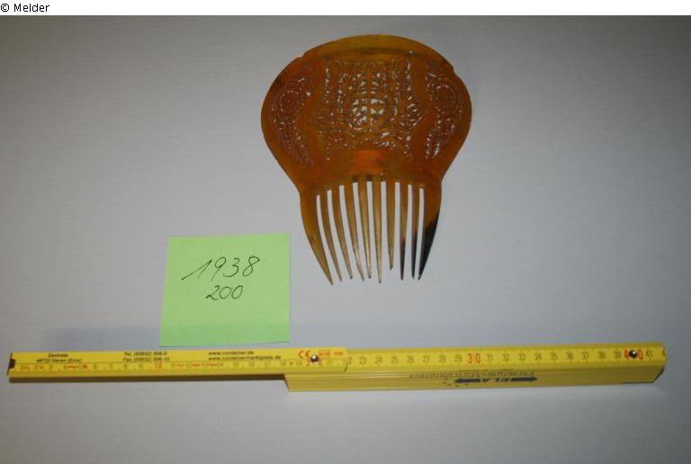Found-Object Report | Object report Comb (horn) Lost Art-ID412175 Previous Next Artist / Creator Unknown TitleComb (horn)Object typeCrafts and other folk artsGroup of reported objectsCrafts and other folk artsMaterial / TechniqueHornInventory number1938/200Description Gravur: "Glaube, Liebe, Hoffnung" Read more Read less Provenance Received 1938 by the merchant Max Raphael Hahn from Göttingen (Merkelstr.). Whereabouts unknown. Read more Read less Status restituted Published since2009 Contact Städtisches Museum Göttingen Ritterplan 7/8 37070 Göttingen Germany Phone(0551) 4002843Fax(0551) 4002059E-Mailmuseum@goettingen.deHomepagehttp://www.museum.goettingen.de/ Contact Andrea Rechenberg M.A.PositionLeiterin