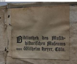 Label: " Bibliothek des musikhistorischen Museums von Wilhelm Heyer, Köln"; stamp: "Musikwissenschaftliches Institut der Universität Köln"; handwritten inventory number: " 11,137";