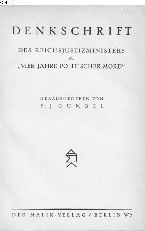 Denkschrift des Reichsjustizministers zu 'Vier Jahre politischer Mord'