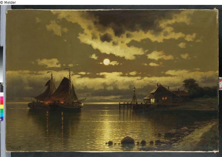 Dutch fishing harbour in the moonlight
